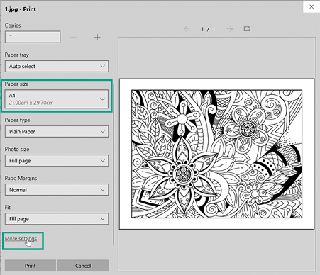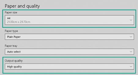 Ensure the paper size is A4 or US Letter > go to "More Settings" > ensure "Output quality" is set to "High quality"
