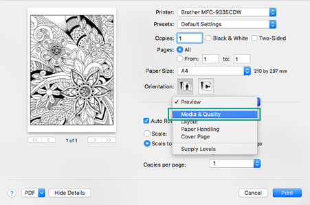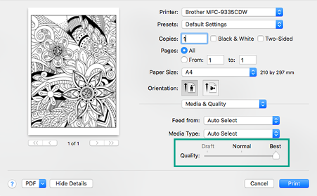 Ensure the paper size is A4 or US Letter > go to "Preview" > select "Media & Quality" > Set Quality to "Best"